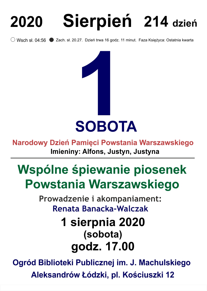 1 Sierpnia Tekst Piosenki. Nie ma jeszcze tłumaczenia dla tego utworu. Zobacz słowa utworu ostatni dzień sierpnia wraz z teledyskiem i tłumaczeniem.